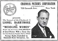 Meddling Women is a 1924 American silent drama film produced by Chadwick Pictures Corporation and distributed by them and/or a State's Rights basis. Directed by Ivan Abramson, the film stars Lionel Barrymore. [1][2]