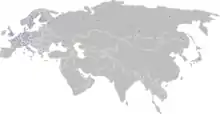The median wasp has a Palearctic distribution and is found throughout Europe and temperate regions of Asia all the way east to Japan. It prefers temperate climates and high humidity.[3] This species was identified in the United Kingdom for the first time in 1980 after having spread there from continental Europe.[7] It has also been sighted in New Zealand, but it is not known if the wasp is widespread in the area or if this was an isolated occurrence.[11]