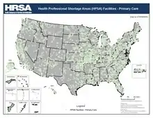 About 20% of Americans live in rural regions, but only nine percent of the country's doctors practice in rural areas.[18] Federal health officials predicted in 2019 that the number of rural doctors, half of them over 50 years of age, would decline by 23 percent during the next ten years.[9] A contributing factor to this decline is newly graduated doctors' reluctance to move to rural areas. While doctors originally from rural areas are more likely to return to rural areas to practice, rural Americans are less likely to attend medical school in the first place.[11] Newly graduated doctors have also tended to prefer jobs in hospitals, rather than jobs in family practices that are more common in rural areas.[19]