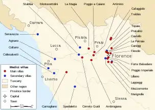 ![]() Location of Medici villas in Tuscany ![]() Medici villas (Italy) | |