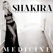 "Medicine" is a song recorded by Colombian singer and songwriter Shakira. It was released as the fourth and final from her tenth studio album Shakira (2014). Featuring guest vocals from American country music singer Blake Shelton, the song was performed on the 49th Annual Academy of Country Music Awards on April 6, 2014,[1] and spent one week on the country charts at number 57 from unsolicited airplay. The song was written by Shakira alongside Mark Bright and Hillary Lindsey, while the production was handled by Shakira and busbee.