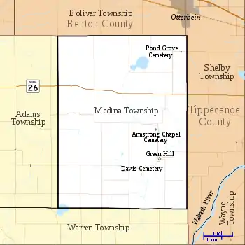 - "Medina Township, Warren County, Indiana". Geographic Names Information System. United States Geological Survey. Retrieved 2009-09-24.