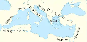The region spans a wide variety of cultures with distinct cuisines, in particular (going anticlockwise around the region) the Maghrebi, Egyptian, Levantine, Ottoman (Turkish), Greek, Italian, Provençal, and Spanish, though some authors include additional cuisines. Portuguese cuisine, in particular, is partly Mediterranean in character.
