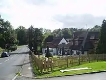 An old hammer mill site, at work from 1567 to 1786. One of the names indicates that the mill was a drawing mill at one time. In 1533, the effects of Thomas Gaynesford included a hammer mill. The property had been bought by Gaynesford from Sir John Gage in 1550. In 1559, Nicholas Norton was a miller grinding grain near lands called Shawnors, followed by John Myller in 1560 to 1563, when John Rodgers succeeded him. in 1567, Wiremill was being worked by John Thorpe. In the 1560s, there are several references to Woodcock Hammer or Forge being worked by Swanne. Woodcock Forge is believed to have been built by Jack Dancy of Turners Hill. Hedgecourt Mill is thought to have been remodelled by him about the same time. The pond at Hedgecourt acted as a storage for the Woodcock forge. The tilt hammer was operated by an overshot waterwheel. Another overshot waterwheel worked bellows. In 1574, John Thorpe of Hedgecourt was working the forge in connection with the furnace at Myllwood. in 1586 Thorpe bought property from William Swanne Sr in the Woodcock Forge area. From 1598 to 1606 the rent was paid by Thomas Thorpe, son of John and in 1629 the forge was leased by John Gage to Richard Thorpe, the son of Thomas. His son, also Richard, held the forge until 1651, when it was forfeit in lieu of a debt. Thorpe's interest in the forge was sold to Simon Everenden of Cliffe near Lewes. In the 1650s the forge was in the occupation of John Newnham. In 1664, the forge was lease by Jeremy Johnson Jr of Charlwood. In 1672, woodland next to the pond was referred to as "Hammerwood" also known as "Wire Wood" thus indicating a drawing mill. John Newnham died in 1707, and his wife died in 1719, but the forge was known as "Mr Johnson's Forge" in 1717. At that time the output from the forge was some 40 long tons (41 t) per annum. By 1729 the forge was in the occupation of Thomas Stanford, who was converting sows from Heathfield furnace at Woodcock Forge. Stanford does not seem to have had any connections with the Wealden iron industry after 1738. In 1742 Samuel Baker was in occupation, followed by Edward Raby and Alexander Master in 1758. They were supplying the Board of Ordnance with several gauges of bar iron, staff iron and rolled plate. Raby & Master were bankrupt in 1764. Edward Raby died in 1771, and the forge was taken over by his son Alexander until 1774, when the Government forced him to give up Woodcock furnace in a wrangle over the size of his moulds. Joseph Wright and Thomas Pickett took the business, but it is thought that the Hammer Mill ceased to be used c.1787. In 1800, the name Wire Mill is first used. Daniel Fossick held Wire Mill from 1800 to 1816, when he died. The mill was sold to James Jenner, who converted it to a corn mill. Jenner was at Wire Mill until 1844, when he was succeeded by William Brand. In 1838 he was joined by John Saunders, the mill being known as Woodcock Mill then. Saunders left in 1840 to take Hedgecourt Mill and William Brand joined Jenner. Jenner died in 1844 and Thomas Brand took the mill, which was known as Wire Mill in 1851. At this time the mill had two overshot waterwheels and drove four pairs of millstones. In 1855 the mill lake covered 14 acres (5.7 ha). Thomas Brand was still running the mill in 1871, assisted by his son Thomas, John Holman and John Burfield, all described as millers in the census of that year. In 1881, Thomas Brand (son) was the miller at Wire Mill. He ran the mill until 1887/88 when David Dadswell took the mill. Wire Mill was sold in 1911, described as having two overshot waterwheels and the mill lake covered 11 acres (4.5 ha) at this time. A picture of the mill c.1911 can be seen here. The mill was not sold and again offered for auction in 1912, again without success. A third attempt at auction in 1918 saw the mill being bought by a Major Crum. He sold it to a Miss Wilkins who had the building converted to residential use in 1920. The mill was purchased by the Women's Farm and Garden Union in 1922 and by 1929 was the Wire Mill Tea Gardens. By 1933 it was the Wire Mill Fishing Club and in 1948 the Wire Mill Hotel and Fishing Club. By 1962 the property was known as the Wiremill Lakeside Hotel, Country and Fishing Club. Over the next decade the Country Club grew in popularity, leading to complaints and the local council refused to renew the clubs music and dancing license. In 1986 the mill was again sold, and although damaged by a fire during renovations reopened as a restaurant in September of that year. The mill was sold again in 1996 and 2000 and is now a pub. The building is devoid of machinery.[Note 1] [59][60][61]