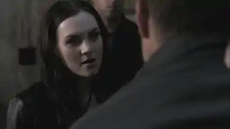 Crowley is later revealed to have faked his death.[10] Meg reforms her alliance with Dean in "The Born-Again Identity" in order to stop Crowley from capturing Castiel. After Castiel absorbs damage Lucifer previously caused to Sam's mind, the Winchesters leave a now-insane Castiel in a mental hospital and Meg takes a job at the hospital to watch over him, reasoning that her status as a Lucifer loyalist marked her as Crowley's enemy and it is thus in her best interest to help the Winchesters.[11] When Castiel partially recovers in "Reading is Fundamental," Meg alerts the brothers and later helps protect Castiel from both angels and demons.[12] In the seventh season finale "Survival of the Fittest", Crowley finds her with Sam, Dean, and Castiel, but does not take action against her because it would upset Castiel, who is necessary to bringing down the Leviathans. Meg assists the Winchesters in killing Dick Roman, the leader of the Leviathans, by directly attacking Dick's headquarters and thus distracting his forces. However, Crowley has her captured immediately afterwards.[13] He tortures her for the location of Lucifer's crypt, which holds a Word of God tablet about angels Crowley wants. Castiel and the Winchesters rescue Meg in the eighth season episode "Goodbye Stranger", and she takes them to the crypt's location. When Crowley arrives, Meg sacrifices herself to allow Sam, Dean, and Castiel time to escape with the tablet.[14]