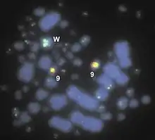 In birds, whose cells contain microchromosomes, it has been suggested that there was a correlation between the presence of mega-telomeres and the number of microchromosomes present in a species, such that bird genomes with large numbers of microchromosomes also possessed larger amounts of telomeric DNA sequence. It was thought that these telomeric sequences might protect genes on these tiny chromosomes from erosion during cell division.[5] However, subsequent studies showed that mega-telomeres are not necessarily present in all species with microchromosomes, nor are they found on all microchromosomes within a cell.[11] Mega-telomeres are also thought contribute to the high recombination rate of chicken microchromosomes. The longest mega-telomere in chickens is associated with the W (female) chromosome, suggesting that mega-telomeres may also affect sex chromosome organization and the generation of genetic variation.[7]