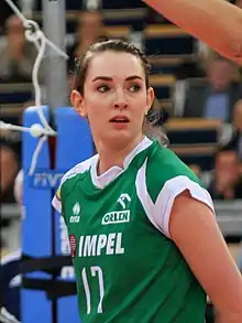 Megan Eileen Courtney (born October 27, 1993) is an American indoor professional volleyball player for the United States women's national volleyball team. Courtney played outside hitter for the Penn State women's volleyball team, and won back to back national championships in 2013 and 2014. With the USA national team, she played at the 2017 FIVB World Grand Prix. She was named the best libero at the 2019 FIVB Volleyball Women's Nations League.[1] Courtney was also selected as an alternate to the 2020 USA Olympic Team but did not travel to Tokyo.[2]