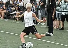 In October 2011, Rapinoe signed with Australian W-League team Sydney FC as a guest player for two games.[54] In her second game against Melbourne Victory, she scored with seven minutes remaining to seal three points for Sydney.[55] The win was the first for Sydney during the 2011–12 season.[56] Sydney FC went on to finish third in the regular season[57] and advanced to the playoffs where they were defeated by Brisbane Roar in penalty kicks.[58]