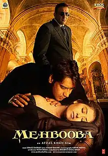Mehbooba ("Beloved") is a 2008 Indian Hindi-language romance film written, produced and directed by Afzal Khan. The story is based on a love triangle, with the lead protagonists being Sanjay Dutt, Ajay Devgn and Manisha Koirala. The music of the film was composed by Ismail Darbar. Mehbooba was released in India on 11 July 2008; it was shot in 2000, but got delayed and released in 2008.[1][2][3][4][5]