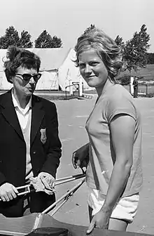 ![]() Meike de Vlas with her coach Veenstra at the 1964 European Championships | |||||||||||