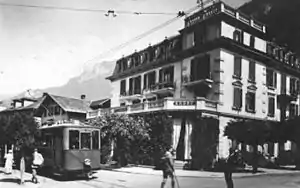 ![]() Car Ce2/2 3 in front of the Hotel Krone in Meirigen | |
