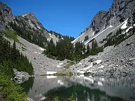 ![]() bordered by Chair Peak (to the right) and Kaleetan Peak (to the left) | |