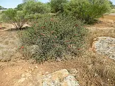 Melaleuca fulgens, commonly known as the scarlet honey myrtle, is a plant in the myrtle family Myrtaceae, and is endemic to Western Australia, South Australia and the Northern Territory. It is notable for its showy orange, red or purple flowers, unusual foliage and fruit, and is a popular garden plant. It is a member of Melaleuca, a large and diverse genus whose members range from large trees such as M. quinquenervia, to small shrubs.[2]
