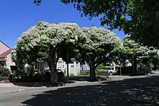 Melaleuca linariifolia is cultivated as an ornamental tree for parks and gardens and is also used as a screen or windbreak in Australia[8][9] and overseas.[10] It is popular as a nature strip tree in Melbourne in Victoria.[3] It tolerates both dry and boggy conditions and is frost hardy.[3] It should be planted with caution as it can damage wastewater pipes,[11] and is easily ignitable, so should not be planted in fire-prone areas. It has also become a garden escape in Western Australia,[12] however it suitable for planting under powerlines[13] and is a food or habitat sources for native animals, including many insects.[13]