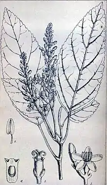 Under the APG II system this genus was placed alone in family Melanophyllaceae, but with the rider that "[s]ome of the families are monogeneric and could possibly be merged when well-supported sister-group relationships have been established."[1] In 2004, such a relationship was established between Melanophylla, Aralidium and Torricellia, resulting in the transfer of the first two of these genera into Torricelliaceae.[2][3]