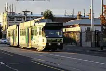 Route 59 was first allocated to the line between Essendon Aerodrome and the Elizabeth Street terminus on 16 May 1943, when the Essendon line was extended to the Essendon Airport.[1][2] Prior to that, route 59 had been allocated to the Williamstown Road line on the Footscray system, but numbers were never really used since the single-truck trams that ran the line didn't have route number boxes. Trams from Essendon had always terminated at Elizabeth Street, though before the Brunswick cable tram line was converted in 1936, they instead terminated on William Street.[2] During the years where Essendon airport was Melbourne's primary airport, airlines usually transported passengers to the airport for free, the tram to Essendon Aerodrome was usually only used by airport workers. Thus when Tullamarine Airport opened in 1970, the line became of little use, and along with the fact that the line dangerously crossed the Tullamarine Freeway at grade, it was decided to truncate the line to terminate at Hawker Street, Airport West on 7 October 1976.[3][4] On 22 December 1992, the line was extended by 1.2 kilometres to Airport West Shopping Centre. Normally Z class trams are off their usual route, although route 59 only used by B class trams. [5][6]