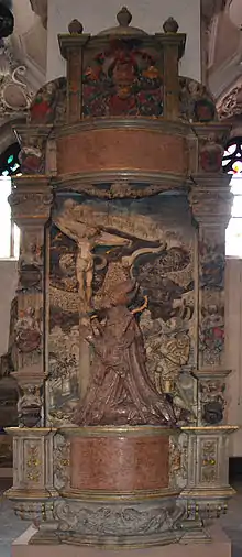 Melchior Zobel von Giebelstadt was born in 1502, the son of Georg Zobel and his wife Dorothea Rüdt von Callenberg.[1] As a younger son, he was groomed for a career in the church from an early age. He became a canon (Domizellar) of Würzburg Cathedral on 27 January 1521. He studied at the University of Wittenberg in summer semester 1521. He spent winter semester 1521 studying at the University of Leipzig. He became a Domherr of Würzburg Cathedral in 1522. On 4 March 1540 he was elected dean of Würzburg Cathedral and was subsequently ordained as a priest.[1] Following the death of Bishop Konrad von Thüngen, Zobel von Giebelstadt was a candidate to replace him as Prince-Bishop of Würzburg, but he lost the election, held on 1 July 1540, to Conrad von Bibra.