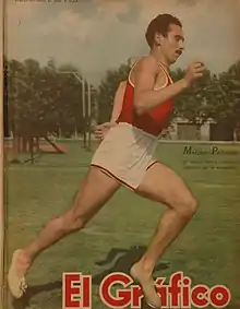 Melchor Palmeiro (26 February 1923 – 1997)[1] represented Argentina at the 1948 Summer Olympics in London. He was entered in the 1500 m, where he finished fifth in his heat recording a time of 4:01.6 and failed to advance. His personal best in the 1500m was 3:57.8 when he came first at the 1947 South American Championships. He also came second at the Championships in 1943 and again in 1949.[2]