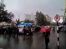 Meles encountered major challenge in the 2005 election, when opposition groups like the Coalition for Unity and Democracy (CUD), UEDF, and the Oromo Federalist Democratic Movement gained largest parliament seats, and declared his party as winner and kept prime minister. It participated more than 30 others parties in election. The election was the most controversial in the Ethiopian democratic history, while most opposition groups stated "stolen", while rural areas alleged "frauded".[54] In aftermath, demonstrations and protests resulted chaotic riot in Addis Ababa, after blockade of police officers. The event left murder of 193 people and injuries of 763 by seven police officers. 10,000 people also imprisoned. The government accused for intentional violence.[55][56]