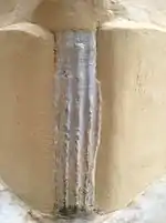 Sections of a Roman road, cisterns, canals and other archaeological remains were discovered beneath Palazzo Castelletti in Rabat.[29] Some inscriptions, column capitals and other architectural remains from ancient Melite have also been found, and these are now preserved at the Domus Romana museum and the Cathedral Museum in Mdina,[23] or in private collections.[30] Parts of the podium of the Temple of Apollo were discovered in 2002.[13] The remains of other ancient buildings, as well as pottery, coins or other artifacts from the Bronze Age or Punic-Roman period, are still occasionally discovered in excavations or during construction projects in Mdina or Rabat.[5][15]
