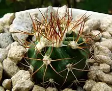 Melocactus deinacanthus, also known as the Wonderfully Bristled Turk's-Cap Cactus[2] is a species of plant in the family Cactaceae. It is endemic to Brazil. Its natural habitat is rocky areas. It is threatened by habitat loss.