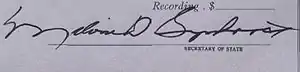 Melvin D. Synhorst (January 21, 1914 – March 28, 1999) was the Iowa Secretary of State from 1949 to 1965 and from 1967 to 1980. Elected on November 2, 1948, and on November 8, 1966, he was a native of Sioux County. Serving for the two years between his terms was Gary L. Cameron. Synhorst's second term ended at his resignation; he was replaced by Mary Jane Odell.[1] From 1959 to 1960, Synhorst was the president of the National Association of Secretaries of State.[2]