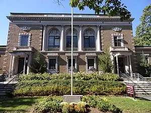 After the global tragedy of World War I, alumni of the University of Massachusetts Amherst who had served in the Military arranged a fund to construct a building honoring the sacrifice of their 51 fallen colleagues. The building, located centrally on the university campus next to the Campus Pond, Old Chapel (Amherst, Massachusetts), and W. E. B. Du Bois Library currently serves as the home to the University of Massachusetts Amherst Alumni Association and members of the Campus Development office. A 2009 report recommended addition of Memorial Hall to the state's list of historical places.[1]