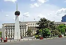 The Memorial of Rebirth (Memorialul Renașterii in Romanian) is a memorial in Bucharest, Romania that commemorates the struggles and victims of the Romanian Revolution of 1989, which overthrew Communism. The memorial complex was inaugurated in August 2005 in Revolution Square, where Romania's Communist-era dictator, Nicolae Ceaușescu, was publicly overthrown in December 1989.