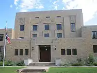 In 1910 or 1911, while the Fort Worth and Rio Grande Company was making plans to lay a track through the community, company officials asked residents to rename their town Menard to facilitate the painting of signs.[7] An economic boom followed the arrival of the first train in 1911. The 1920 census recorded 1,164 people living in Menard. For many years, the town served as the principal shipping point for Menard County. Although the community was affected by the Great Depression, both of its banks—the Menard National Bank and Bevans State Bank—remained open. Menard's population stood at 1,969 in 1930, 2,375 in 1940, and 2,685 in 1950. That figure began to decline during the 1950s and 1960s, as road improvements made travel and shipping less dependent on rail service. The Atchison, Topeka and Santa Fe Railroad discontinued its service to Menard in 1972, but donated the depot to the county for use as a history museum. The Menard County Historical Society began collecting artifacts in 1975 and dedicated the museum in 1978. By 1980, 1,697 people were living in Menard. In 1990, the population fell slightly to 1,606 before rebounding to 1,653 in 2000.[9]
