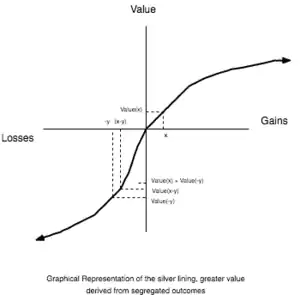 Given this framework, how do people interpret, or ‘account for’, multiple transactions/outcomes, of the format ? They can either view the outcomes jointly, and receive , in which case the outcomes are integrated, or, in which case we say that the outcomes are segregated. Due to the nature of our value function’s different slopes for gains and losses, our utility is maximized in different ways, depending on how we code the four kinds of transactions and (as gains or as losses):