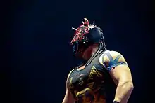 In April 2011 El Terrible and El Texano, Jr. split from Los Hijos del Averno to form a new faction with Rey Bucanero called La Fuerza TRT ("The TRT Power").[21] On July 15, Los Hijos del Averno defeated La Generación Dorada ("The Golden Generation"; Máscara Dorada, La Máscara and La Sombra) to win the CMLL World Trios Championship.[22] They would lose the title to El Bufete del Amor (Marco Corleone, Máximo and Rush) on February 19, 2012.[23] Mephisto returned to Japan in January 2013, when he took part in the three-day Fantastica Mania 2013 event, co-promoted by CMLL and New Japan Pro-Wrestling in Tokyo. During the first night on January 18, he teamed with Gedo and Jado to defeat Atlantis, Jushin Thunder Liger and Tiger Mask in a six-man tag team match.[24] The following night, Mephisto and Okumura defeated Diamante and Máscara Dorada in a tag team match.[25] During the third and final night, Mephisto teamed with Euforia and Kazuchika Okada in a six-man tag team main event, where they were defeated by Atlantis, Hiroshi Tanahashi and Prince Devitt.[26] On August 13, Mephisto defeated La Máscara for the Mexican National Light Heavyweight Championship.[27] On January 1, 2014, Mephisto defended the Mexican National Light Heavyweight Championship against Atlantis.