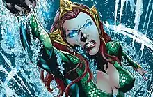 In the alternate timeline of the 2011 "Flashpoint" storyline, Mera is the Queen of Atlantis and killed by the Amazons at some point. Her death prompted Aquaman to cause Western Europe to sink into the sea, hoping to destroy New Themyscira as well.[49] Mera's death was ordered by Wonder Woman.[50] In a flashback, Mera is shown to attack the Queen of New Themyscira, which at that point was Diana (Wonder Woman), but she was eventually beheaded by Wonder Woman.[51]