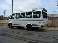 The Mercedes-Benz O309 or Angkor Minibus was the bus variant of the Düsseldorfer Transporter, a large capacity van that became available in 1967. During its lifetime, 10 different engines - with four or six cylinders delivering 55-130 hp - were available. The O 309 was the successor of the O 319 and the predecessor of the Mercedes-Benz T2 second generation and the Vario. The internal chassis-designations for the O 309 are 309, 310 and 313.[1]