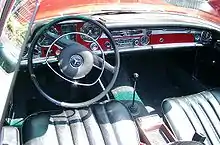 Other differences of the North American models include imperial gauges, chrome bumper guards, side reflectors (illuminated from 1970), lower rear-axle ratios for faster acceleration yet lower top speeds, and no "single-side" parking lights. US market 280 SL engines required emission control modifications, including "softer" valve timings, a reduced compression ratio and a modified injection pump, which reduced power from 170 PS (125 kW; 168 hp) to 160 PS (118 kW; 158 hp).[7] In the US, automatic transmission, air conditioning, and white wall tires were much more popular than elsewhere.