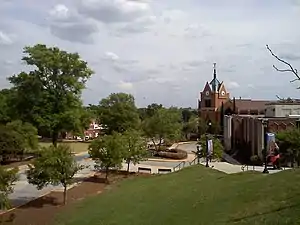 Mercer opened a large retail-residential center on the Macon campus in 2011. The center, called Mercer Lofts, houses the Barnes & Noble operated university bookstore, other shops, and student apartments.[26][27] Mercer Lofts II, a mixed-use development adjacent to Phase I, opened in 2012; the facility houses Mercer's Center for Collaborative Journalism, which consists of the university's journalism department and the editorial-professional staffs of the Macon Telegraph and Georgia Public Broadcasting (on the first floor) along with student apartments (on upper floors).[28][29] Also in 2012, the university opened a new admissions and welcome center on the Macon campus; the center is named for Emily Parker Myers, a long-time university administrator, and is the university's first LEED certified building.[30][31] In 2013, Mercer completed Cruz Plaza, a major landscaping project for the Macon campus central quadrangle linking the University Center (Hawkins Arena), Tarver Library, and Connell Student Center.[32]