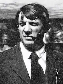The ballet had scarcely begun when the Surrealists started chanting "Bravo Picasso! Down with Satie!" from the back of the theatre. Darius Milhaud argued with the Breton group, Satie fans voiced their support, and a handful of people approached Picasso's box and hurled insults at him.[47] By Tableau II, there was pandemonium in the hall and the curtain had to be lowered. Lydia Lopokova witnessed the events from the audience and quoted a protester proclaiming "Only Picasso lives, down with Beaumont's garçons and the whole Soirées de Paris!"[48] When police arrived to eject the demonstrators, Surrealist Francis Gérard reproached Picasso: "You see, Beaumont has the police throw us out because we were applauding you!"[16] Louis Aragon, still raging against Satie, managed to jump onto the stage and shout, "In the name of God, down with the cops!" before he was dragged off.[49][50] Order was finally restored and the ballet allowed to continue.