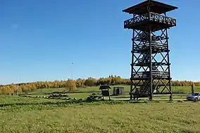 Vaaksaare uplands is a moraine hillock, where agricultural patches alternate with forests and meadows. Meremäe Hill is situated on the border of Kalatsova and Mereküla village. A large part of Setomaa can be seen from the Hill in clear weather, as well as Vastseliina church and Pachory Monastery church domes. Reflection of water from Lake Pskov can also be seen in clear weather, which is probably how the area got its name - by assuming that the reflection was sea (Meremäe – Sea Hill). In 2008, Meremäe rural municipality government built a viewing tower on the Hill and a song stage.[1] Meremäe viewing tower was built in 2008 and is an 18-metre high wooden tower with a shingle roof. The song stage and grounds at the foot of the tower have St. John's day and other events held there every year.