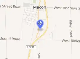 The Meridian school district includes the towns of Macon, Blue Mound, Boody, Elwin, and some areas in the southern tip of Decatur.