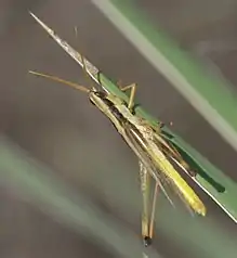Mermiria bivittata, known generally as two-striped mermiria, is a species of slant-faced grasshopper in the family Acrididae. Other common names include the two-striped slantface grasshopper and mermiria grasshopper. It is found in Central America and North America.[1][2][3][4]