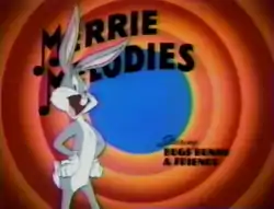 For the syndicated version of the series, each episode began with a title sequence, directed by Darrell Van Citters, featuring Bugs Bunny and Daffy Duck showing classic cartoon clips on a screen; as usual, Daffy would try to butt in on the action, only for some humorous setback to befall him (five different setups were made, one for each weekday). The show itself ran for a half-hour and contained three classic shorts, one of them starring Bugs Bunny, with a short "Hip Clip" placed in between the second and third shorts. 65 episodes of Merrie Melodies were created and aired in first-run syndication from September 17 to December 14, 1990; reruns aired from then until 1992.[1]
