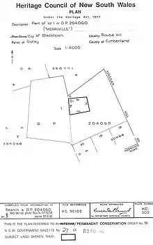 Merriville was classified by the National Trust of Australia (NSW) and a permanent conservation order was placed on it by the Heritage Council of NSW in 1982.[18][1]