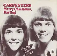 "Merry Christmas, Darling" is a Christmas song by the Carpenters (music by Richard Carpenter, lyrics by Frank Pooler), and originally recorded in 1970.[1] It was first available on a 7-inch single that year (A&M Records 1236), and was later re-issued in 1974 (A&M 1648) and again in 1977 (A&M 1991). The single went to number one on Billboard's Christmas singles chart in 1970 (and did so again in 1971 and 1973) and peaked at number 41 in Cashbox.[2]
