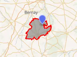 Mesnil-en-Ouche (French pronunciation: [mɛnil ɑ̃.n‿uʃ], literally Mesnil in Ouche) is a commune in the department of Eure, northern France. The municipality was established on 1 January 2016 by merger of the 16 former communes of Ajou, La Barre-en-Ouche, Beaumesnil (the seat), Bosc-Renoult-en-Ouche, Épinay, Gisay-la-Coudre, Gouttiéres, Granchain, Jonquerets-de-Livet, Landepéreuse, La Roussière, Saint-Aubin-des-Hayes, Saint-Aubin-le-Guichard, Sainte-Marguerite-en-Ouche, Saint-Pierre-du-Mesnil and Thevray.[2]