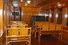 When outfitted, it held 17 rows of pews, as well as an organ, a lectern, and a phonograph donated by Thomas Edison.[3][4]