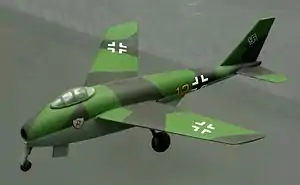 A different design of a two-seat v-tailed heavy fighter and destroyer. It was an all-metal aircraft armed with a large 7.5 cm Pak 40 cannon and was powered by two Heinkel He S 011 turbojets. It had a wingspan of 13.28 m and a length of 13.1 m.[8]