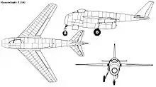 A sleeker design, dating from 30 August 1944. Also a v-tailed single-seat jet fighter with a more pointed nose and wings swept back at 40 degrees. It had a wingspan of 8.16 m and a length of 9.37 m.[4]