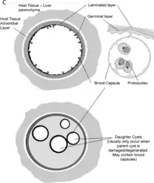 - Vuitton, Dominique A.; McManus, Donald P.; Rogan, Michael T.; Romig, Thomas; Gottstein, Bruno; Naidich, Ariel; Tuxun, Tuerhongjiang; Wen, Hao; Menezes da Silva, Antonio; Vuitton, Dominique A.; McManus, Donald P.; Romig, Thomas; Rogan, Michael R.; Gottstein, Bruno; Menezes da Silva, Antonio; Wen, Hao; Naidich, Ariel; Tuxun, Tuerhongjiang; Avcioglu, Amza; Boufana, Belgees; Budke, Christine; Casulli, Adriano; Güven, Esin; Hillenbrand, Andreas; Jalousian, Fateme; Jemli, Mohamed Habib; Knapp, Jenny; Laatamna, Abdelkarim; Lahmar, Samia; Naidich, Ariel; Rogan, Michael T.; Sadjjadi, Seyed Mahmoud; Schmidberger, Julian; Amri, Manel; Bellanger, Anne-Pauline; Benazzouz, Sara; Brehm, Klaus; Hillenbrand, Andreas; Jalousian, Fateme; Kachani, Malika; Labsi, Moussa; Masala, Giovanna; Menezes da Silva, Antonio; Sadjjadi Seyed, Mahmoud; Soufli, Imene; Touil-Boukoffa, Chafia; Wang, Junhua; Zeyhle, Eberhard; Aji, Tuerganaili; Akhan, Okan; Bresson-Hadni, Solange; Dziri, Chadli; Gräter, Tilmann; Grüner, Beate; Haïf, Assia; Hillenbrand, Andreas; Koch, Stéphane; Rogan, Michael T.; Tamarozzi, Francesca; Tuxun, Tuerhongjiang; Giraudoux, Patrick; Torgerson, Paul; Vizcaychipi, Katherina; Xiao, Ning; Altintas, Nazmiye; Lin, Renyong; Millon, Laurence; Zhang, Wenbao; Achour, Karima; Fan, Haining; Junghanss, Thomas; Mantion, Georges A. (2020). "International consensus on terminology to be used in the field of echinococcoses". Parasite. 27: 41. doi:10.1051/parasite/2020024. ISSN 1776-1042.