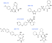 MMP inhibitors can broadly be subdivided into non-synthetic (e.g. endogenous) or synthetic.[2] Several potent MMP inhibitors have been identified, including hydroxymates, thiols, carbamoylphosphonates, hydroxyureas, hydrazines, β-lactams, squaric acids and nitrogenous ligands.[5]