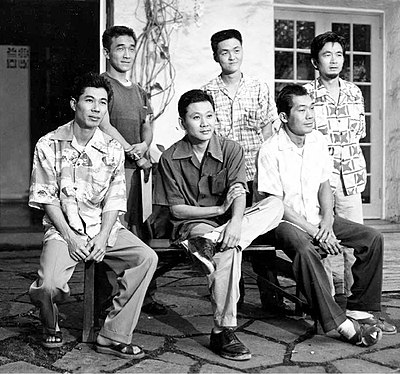 The Metcalf Chateau, also known as The Group of Seven,[1] was a group of Japanese-American artists with ties to Honolulu. The name is derived from a house slated for demolition on Metcalf Street in Honolulu, in which they exhibited in 1954.[2][3] The exhibition was seen by Robert Griffin, director of the Honolulu Academy of Arts, who arranged for the artists to have a group show at the museum.[4] The group's members were Satoru Abe (born 1926), Bumpei Akaji (1921-2002), Edmund Chung, Tetsuo Ochikubo (1923-1975), Jerry T. Okimoto (1924-1998), James Park, and Tadashi Sato (1923-2005).