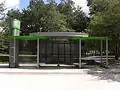 MetroRapid North-South Station C featuring modern design, Ticket Vending Machine, bike rack and solar lighting.